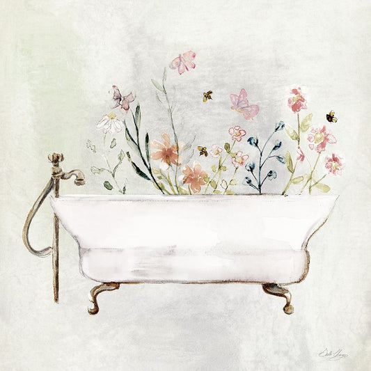 Charming Bath I Black Ornate Wood Framed Art Print with Double Matting by Tava Studios