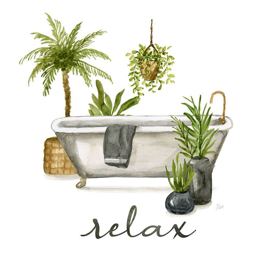 Bathtub Relax Black Ornate Wood Framed Art Print with Double Matting by Nan