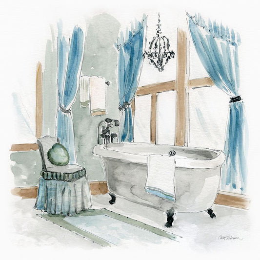 Fancy Cottage Bath I Black Ornate Wood Framed Art Print with Double Matting by Robinson, Carol