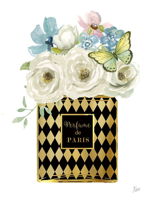 Harlequin Floral Perfume Black Ornate Wood Framed Art Print with Double Matting by Nan