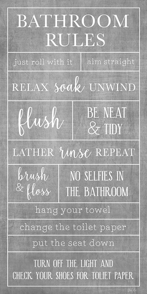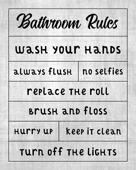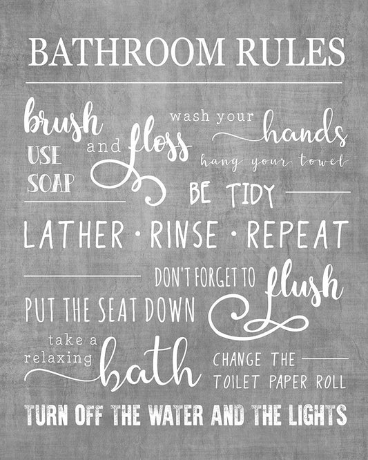 Simple Bathroom Rules Black Ornate Wood Framed Art Print with Double Matting by CAD Designs