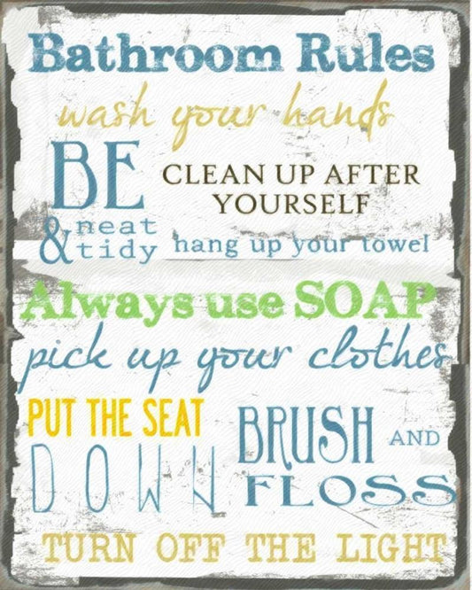 BATHROOM RULES MULTI Black Ornate Wood Framed Art Print with Double Matting by Greene, Taylor