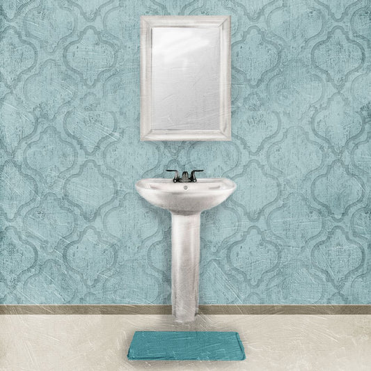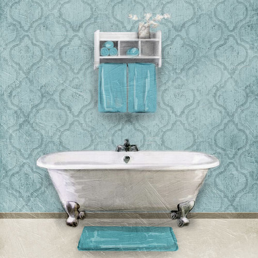 Teal Bath Vibes 1 Black Ornate Wood Framed Art Print with Double Matting by Prime, Marcus