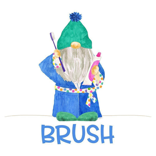 Bathroom Gnomes II-Brush Boy White Modern Wood Framed Art Print with Double Matting by Reed, Tara