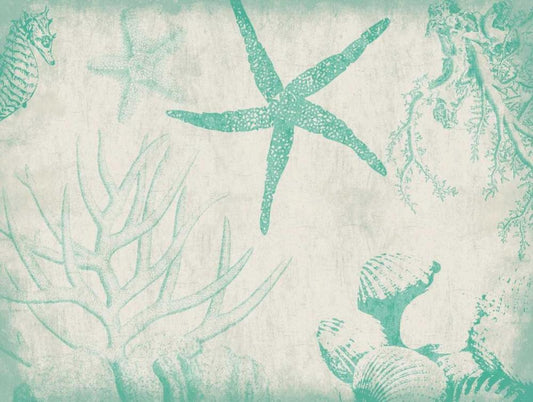 Sea Life in Aqua 2 Black Ornate Wood Framed Art Print with Double Matting by Grey, Jace