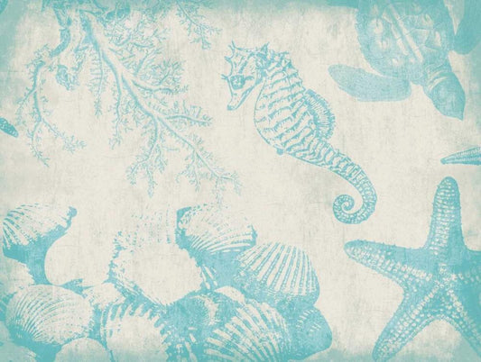 Sea Life in Aqua 1 Black Ornate Wood Framed Art Print with Double Matting by Grey, Jace