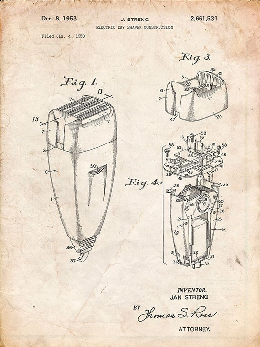 PP1011-Faded Blueprint Remington Electric Shaver Patent Poster Black Ornate Wood Framed Art Print with Double Matting by Borders, Cole