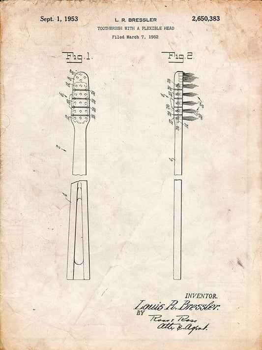 PP1102-Vintage Parchment Toothbrush Flexible Head Patent Poster Black Ornate Wood Framed Art Print with Double Matting by Borders, Cole