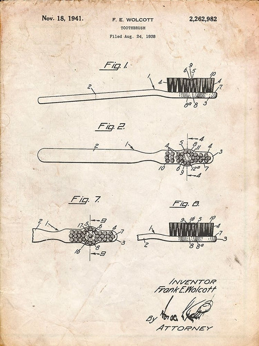 PP1102-Faded Blueprint Toothbrush Flexible Head Patent Poster Black Ornate Wood Framed Art Print with Double Matting by Borders, Cole