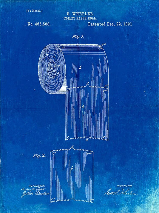 PP53-Faded Blueprint Toilet Paper Patent Black Ornate Wood Framed Art Print with Double Matting by Borders, Cole