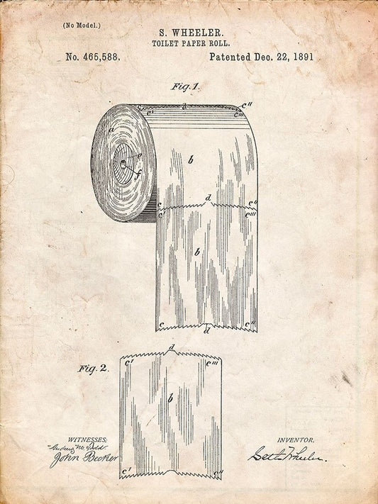 PP53-Vintage Parchment Toilet Paper Patent Black Ornate Wood Framed Art Print with Double Matting by Borders, Cole