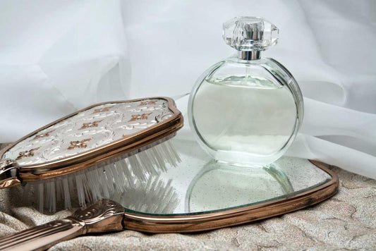 Perfume Bottle I Black Ornate Wood Framed Art Print with Double Matting by McNemar, C. Thomas