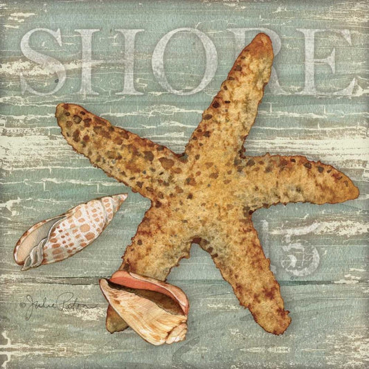 Beach Shells Starfish Black Ornate Wood Framed Art Print with Double Matting by Paton, Julie