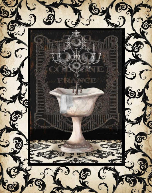 Fleur de Lis Bath Panel I White Modern Wood Framed Art Print with Double Matting by Cusson, Marie Elaine