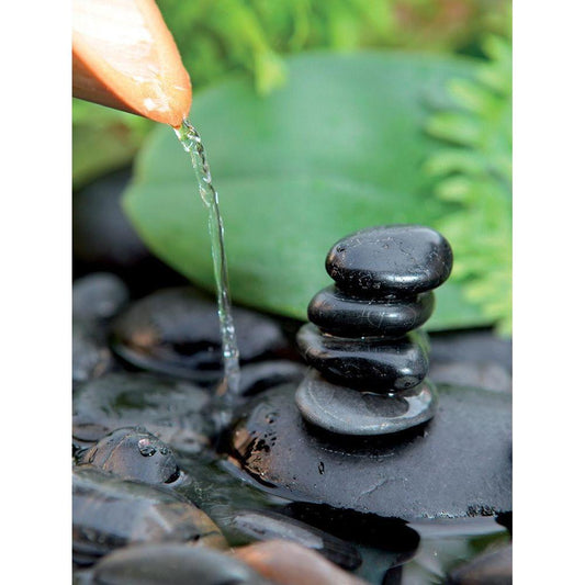 Zen et galets I Black Modern Wood Framed Art Print with Double Matting by Chatelain, Sonia