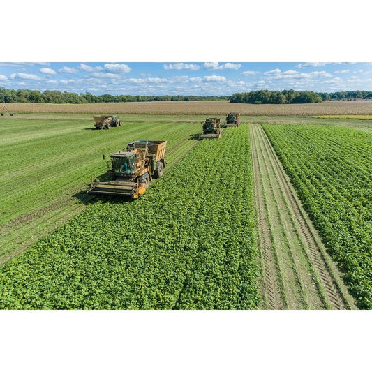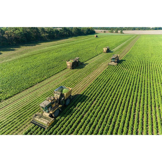 Picking green beans during the green bean harvest-Mason County-Illinois Black Modern Wood Framed Art Print with Double Matting by Day, Richard and Susan
