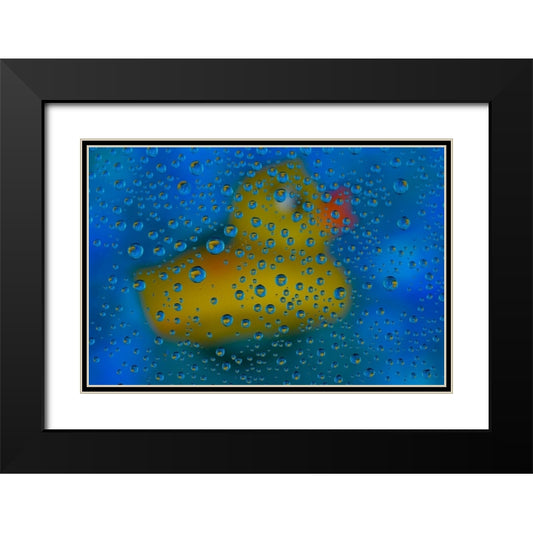 USA- Washington State- Sammamish. Yellow rubber duck in reflections in dew drops Black Modern Wood Framed Art Print with Double Matting by Gulin, Darrell