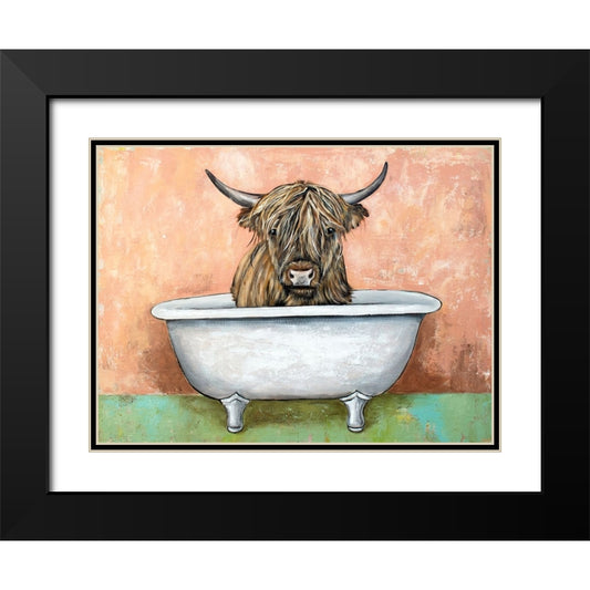 Bathtime Highland Cow Black Modern Wood Framed Art Print with Double Matting by Seeley, Jenn