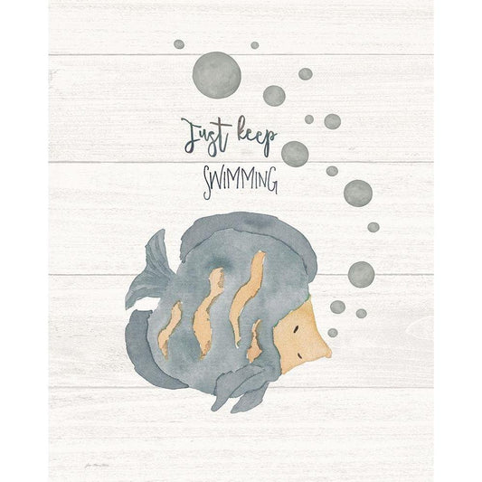 Just Keep Swimming Black Modern Wood Framed Art Print with Double Matting by Moulton, Jo