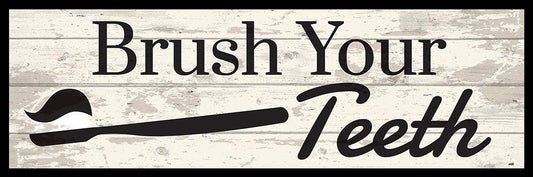 Brush Your Teeth White Modern Wood Framed Art Print with Double Matting by ND Art