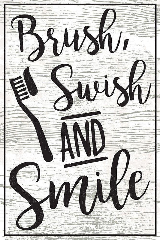 Brush, Swish, Smile White Modern Wood Framed Art Print with Double Matting by ND Art
