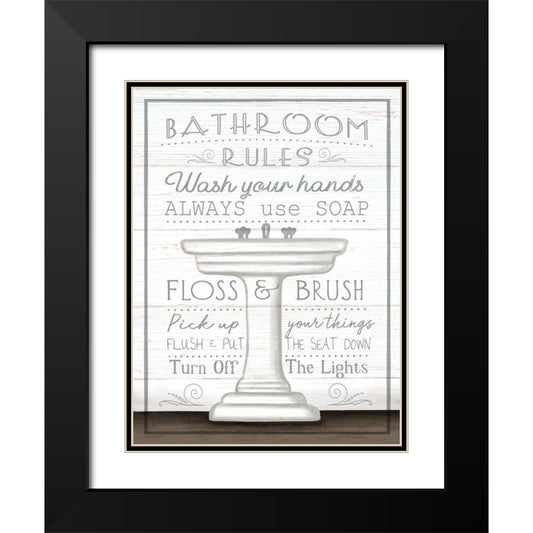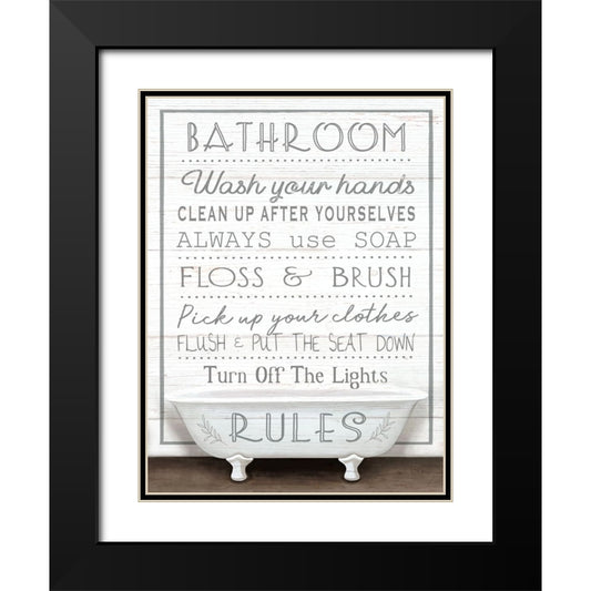 Bathroom Rules Black Modern Wood Framed Art Print with Double Matting by Tyndall, Elizabeth