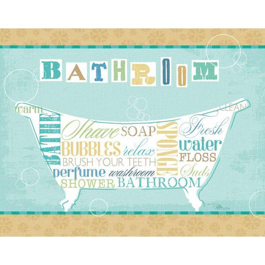 Bathroom Words I Black Modern Wood Framed Art Print with Double Matting by Pela Studio