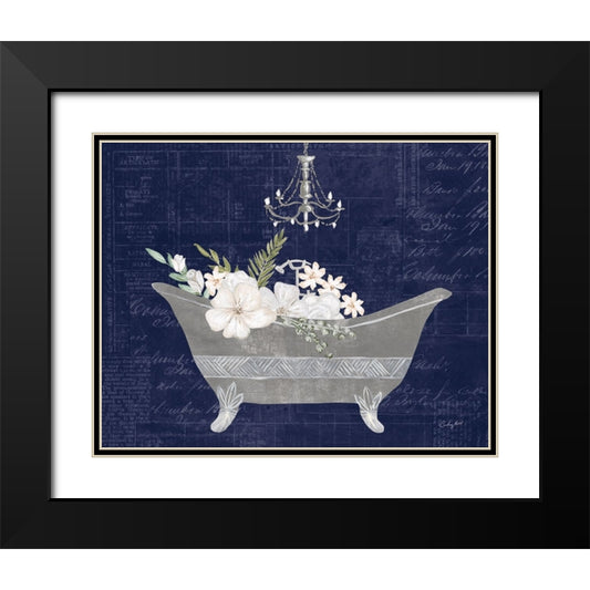 Floral Bath I Indigo Black Modern Wood Framed Art Print with Double Matting by Prahl, Courtney