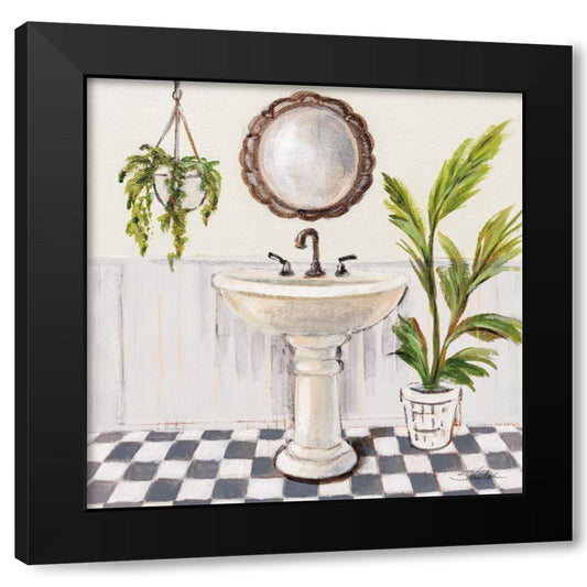 Crisp Cottage Bathroom I Black Modern Wood Framed Art Print with Double Matting by Vassileva, Silvia