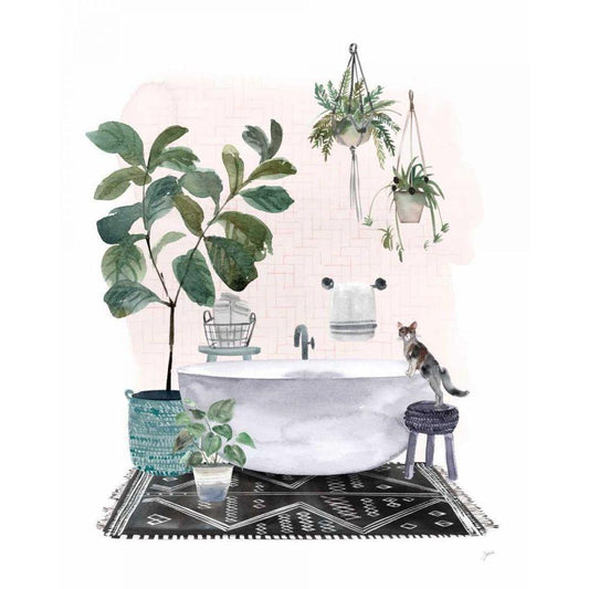 Postcard Bath II Black Modern Wood Framed Art Print with Double Matting by Pela Studio