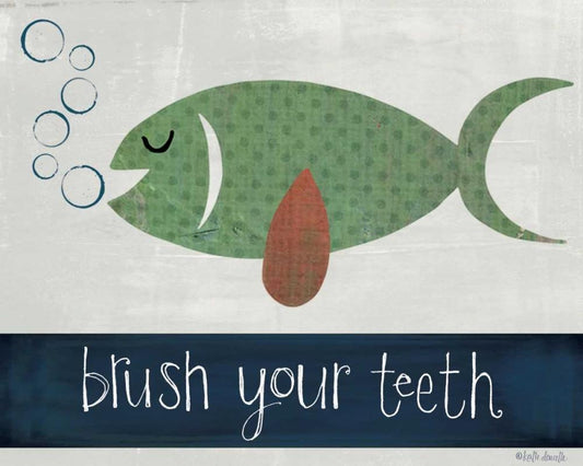 Brush Your Teeth White Modern Wood Framed Art Print with Double Matting by Doucette, Katie
