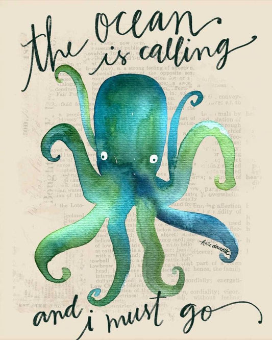 The Ocean is Calling White Modern Wood Framed Art Print with Double Matting by Doucette, Katie