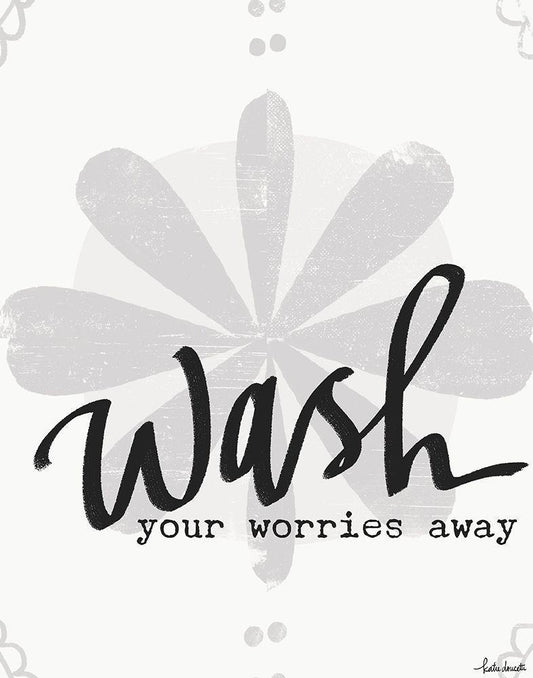 Wash Your Worries White Modern Wood Framed Art Print with Double Matting by Doucette, Katie