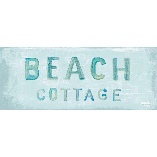 Beach Cottage Sign Black Modern Wood Framed Art Print with Double Matting by Nai, Danhui