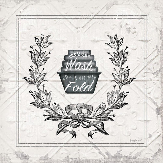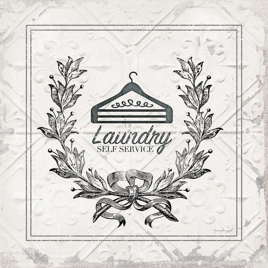 Laundry Self Service White Modern Wood Framed Art Print with Double Matting by Pugh, Jennifer