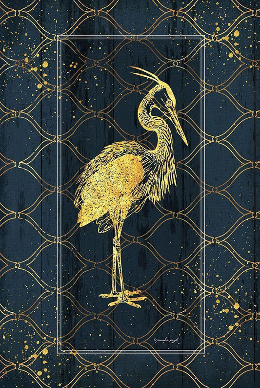 Gold Bird White Modern Wood Framed Art Print with Double Matting by Pugh, Jennifer