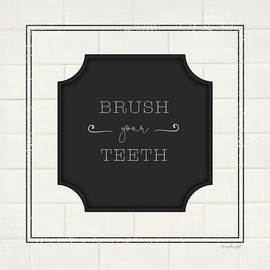 Brush Your Teeth White Modern Wood Framed Art Print with Double Matting by Pugh, Jennifer