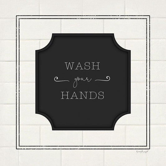 Wash Your Hands White Modern Wood Framed Art Print with Double Matting by Pugh, Jennifer