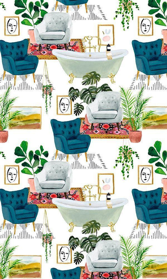 Watercolor Bath in Spa I White Modern Wood Framed Art Print with Double Matting by Van Dijk, Jerianne
