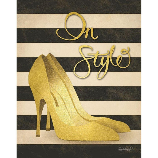 Gold Pumps In Style Black Modern Wood Framed Art Print with Double Matting by Harbick, N.
