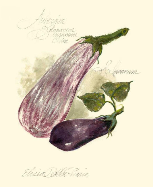 Eggplant Solanum Melongena White Modern Wood Framed Art Print with Double Matting by Della-Piana, Elissa