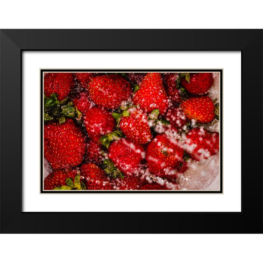 Strawberry Bath Black Modern Wood Framed Art Print with Double Matting by Malone, Will