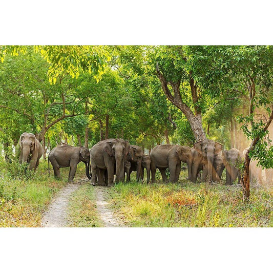 Herd of Asian Elephants in the Sal Forest Corbett National Park-India White Modern Wood Framed Art Print by Rajput, Jagdeep