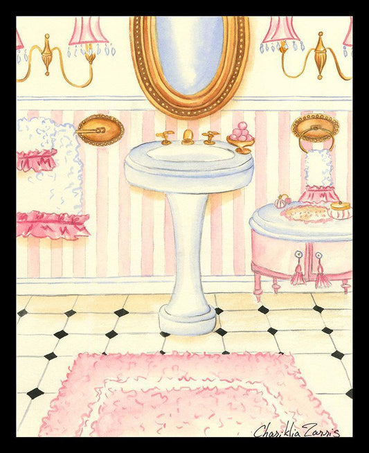 Chic Bath w/ border (TS) I White Modern Wood Framed Art Print with Double Matting by Zarris, Chariklia