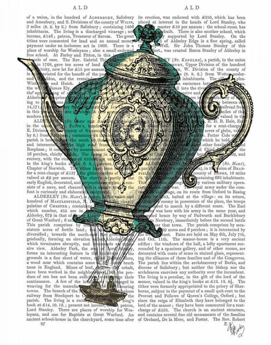 Flying Teapot 1 Green and Yellow White Modern Wood Framed Art Print with Double Matting by Fab Funky