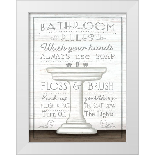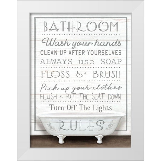 Bathroom Rules White Modern Wood Framed Art Print by Tyndall, Elizabeth