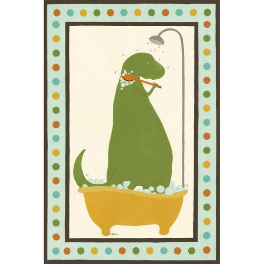 Rub-A-Dub Dino II White Modern Wood Framed Art Print by Vess, June Erica