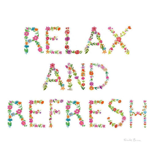 Floral Bathroom Relax and Refresh White Modern Wood Framed Art Print by Zaman, Farida