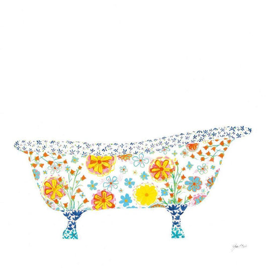Flower Garden Tub II White Modern Wood Framed Art Print by Davis, Joan E.