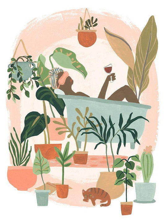 Plant Lady Bath I White Modern Wood Framed Art Print with Double Matting by Vess, June Erica